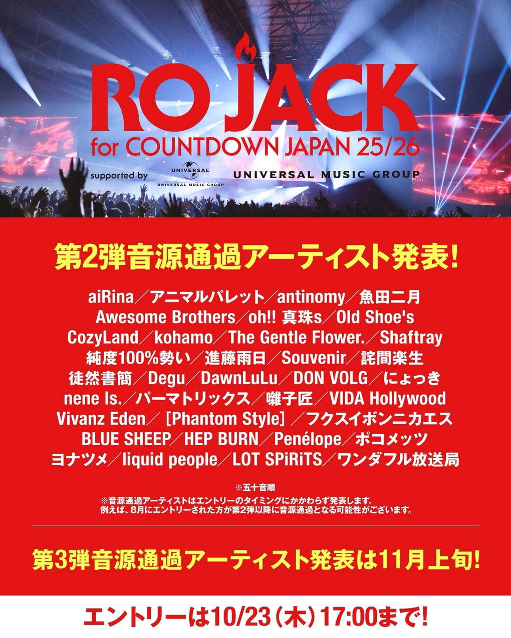 RO JACK 第2弾 音源通過アーティスト選出
